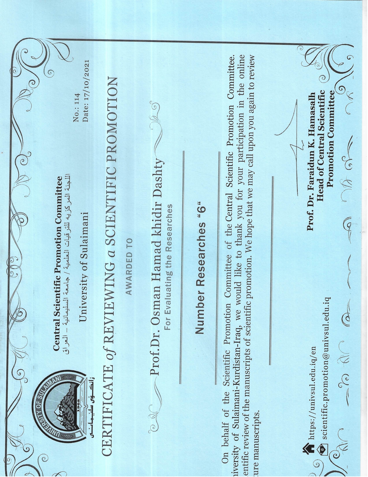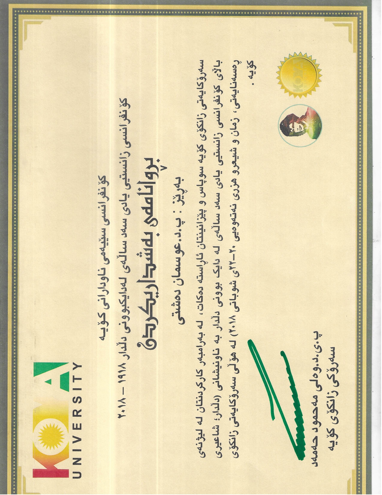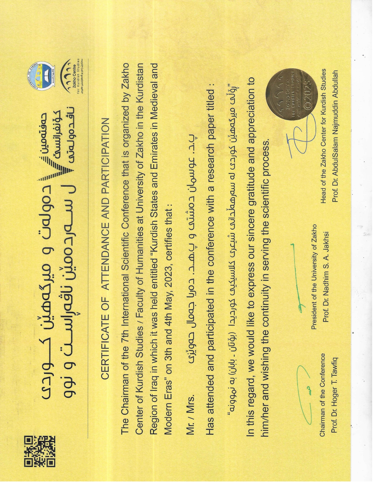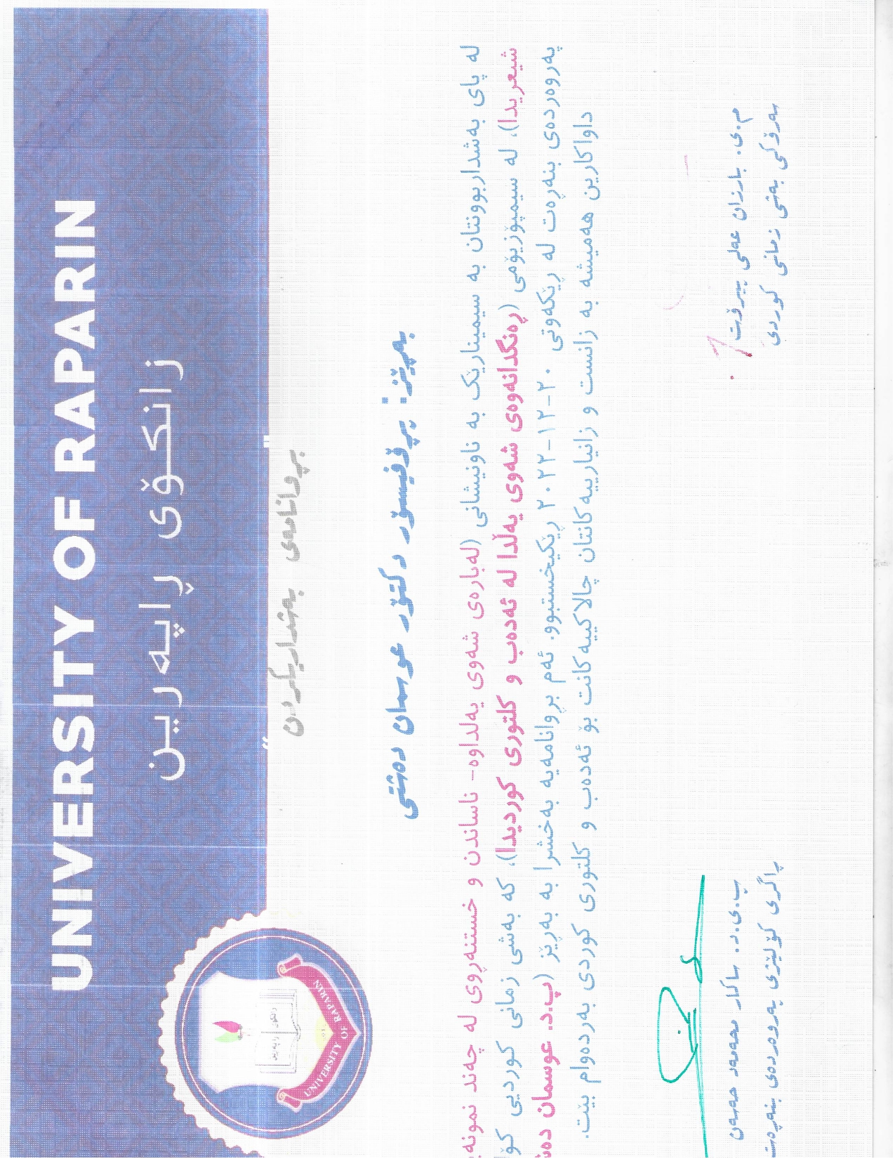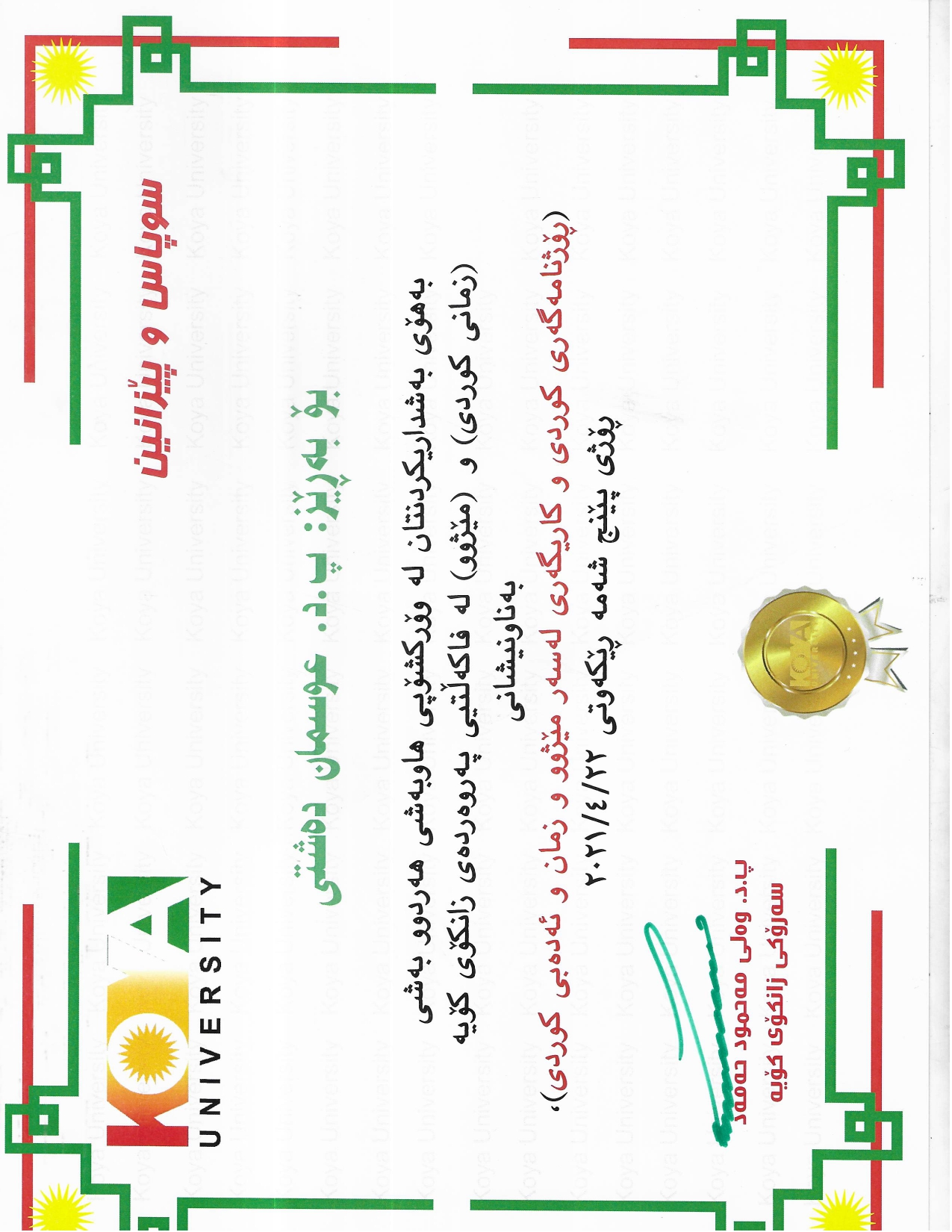 - (٢٠) وتار و توێژینەوەی زانستیی لەگۆڤارە زانستی و ئەکادیمییەکانی زانکۆکانی هەرێمی کوردستان و دەرەوەدا بڵاوکردۆتەوە.