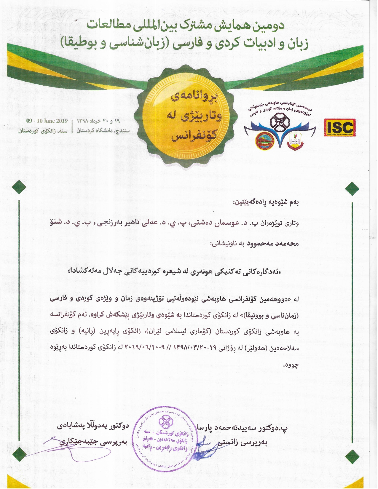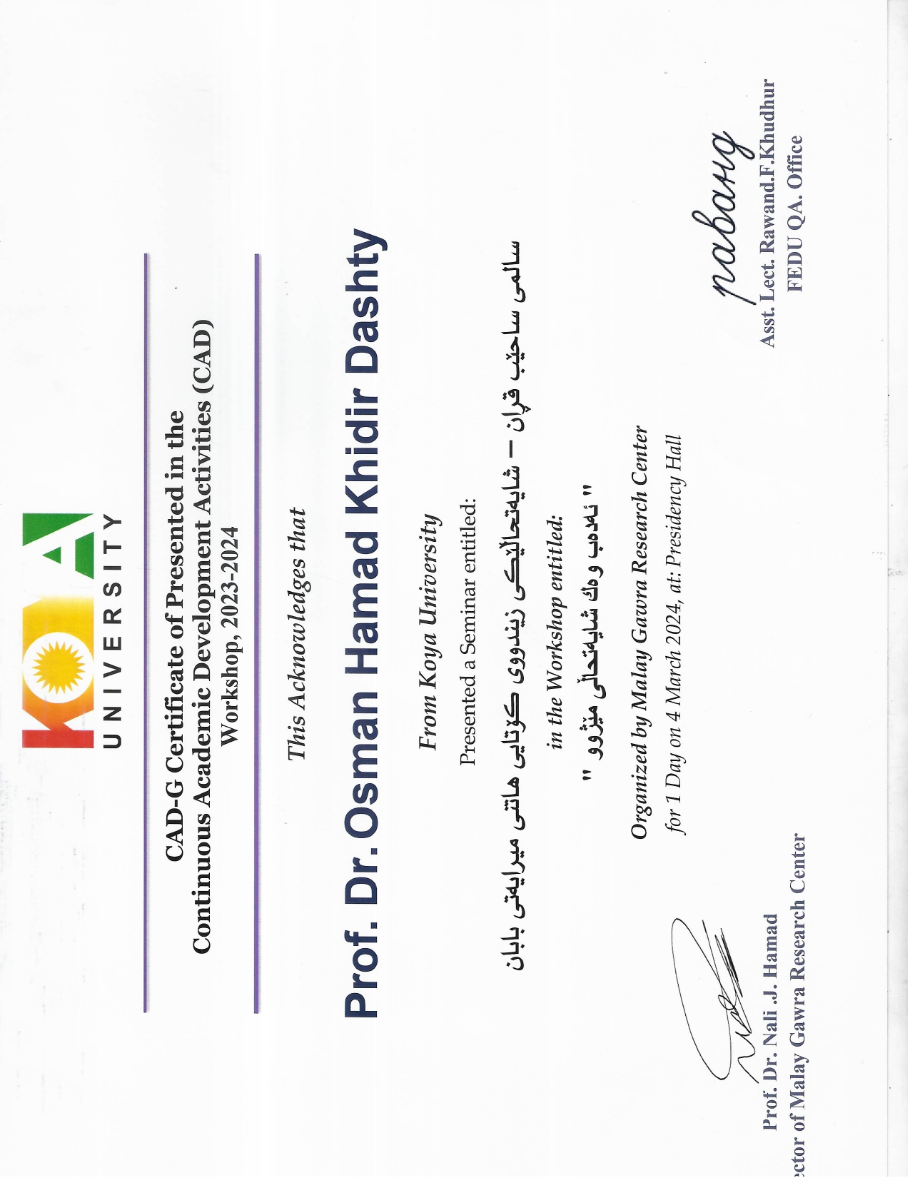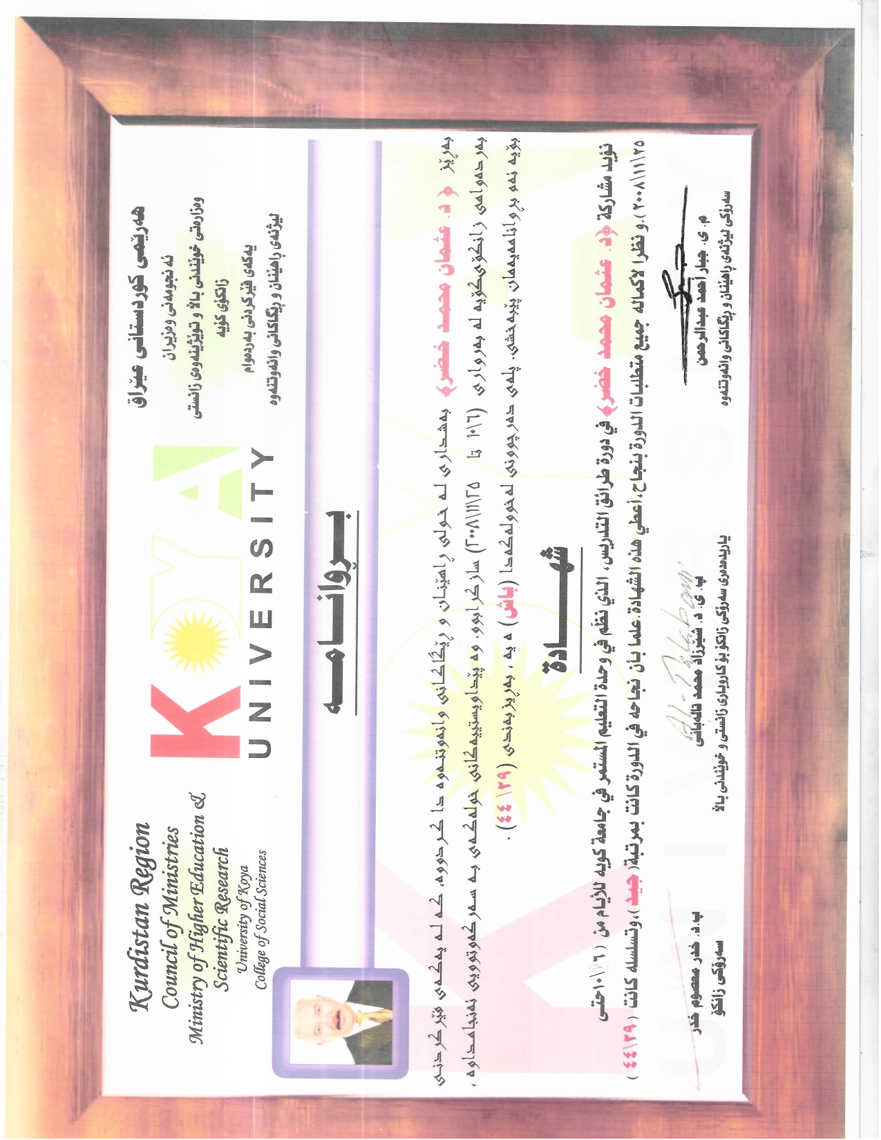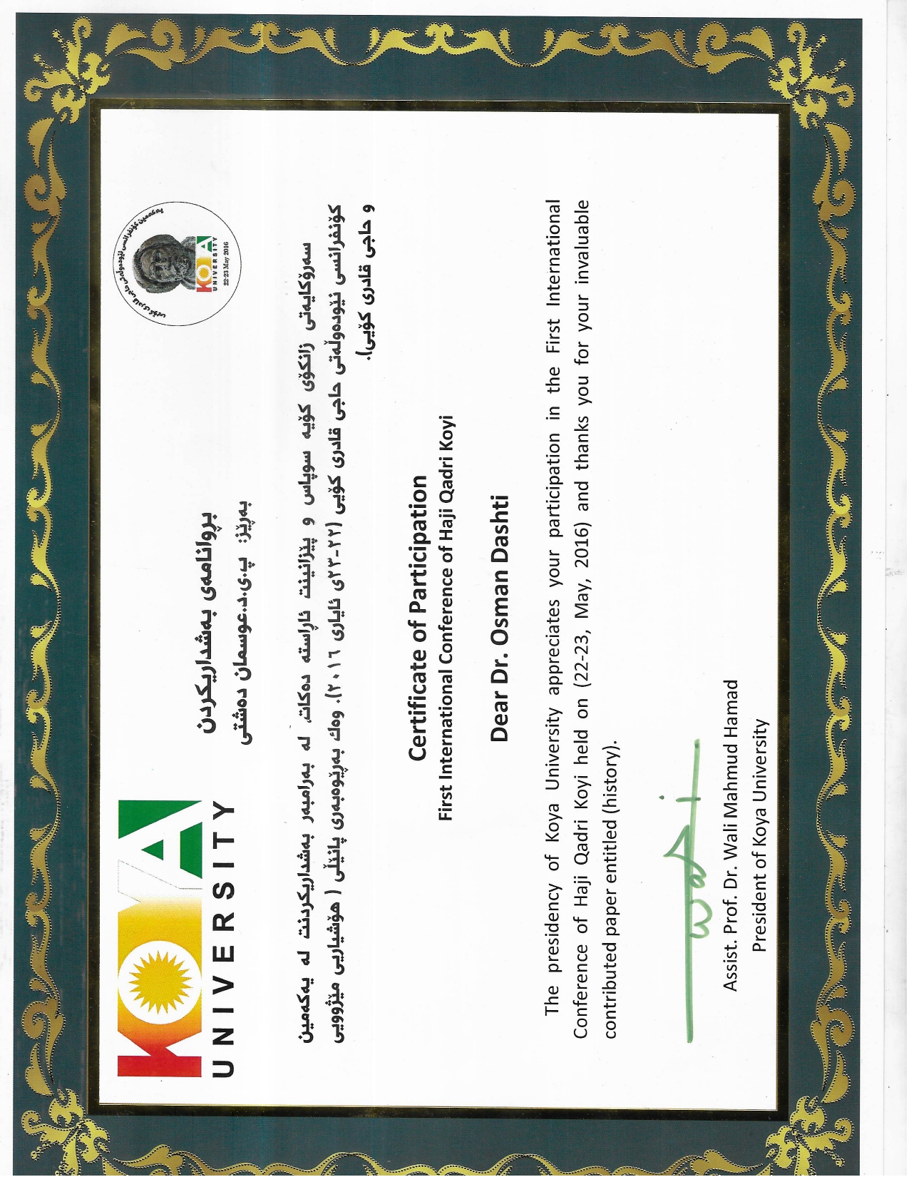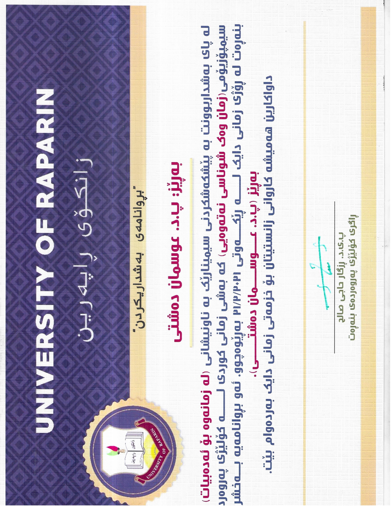 - (٢٠) وتار و توێژینەوەی زانستیی لەگۆڤارە زانستی و ئەکادیمییەکانی زانکۆکانی هەرێمی کوردستان و دەرەوەدا بڵاوکردۆتەوە.