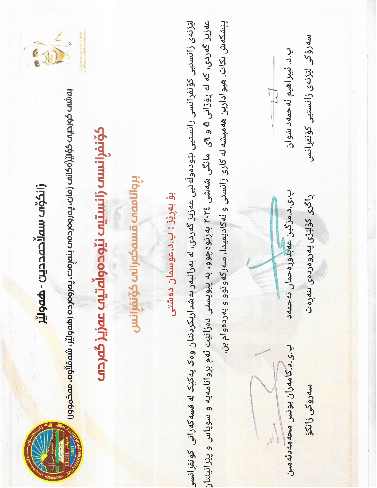 - لەچەند کۆڕ و کۆنفرانسی زانستی و نێودەوڵەتی لەناوخۆی هەرێمی کوردستان و لە دەرەوەدا بەشدار بووە.